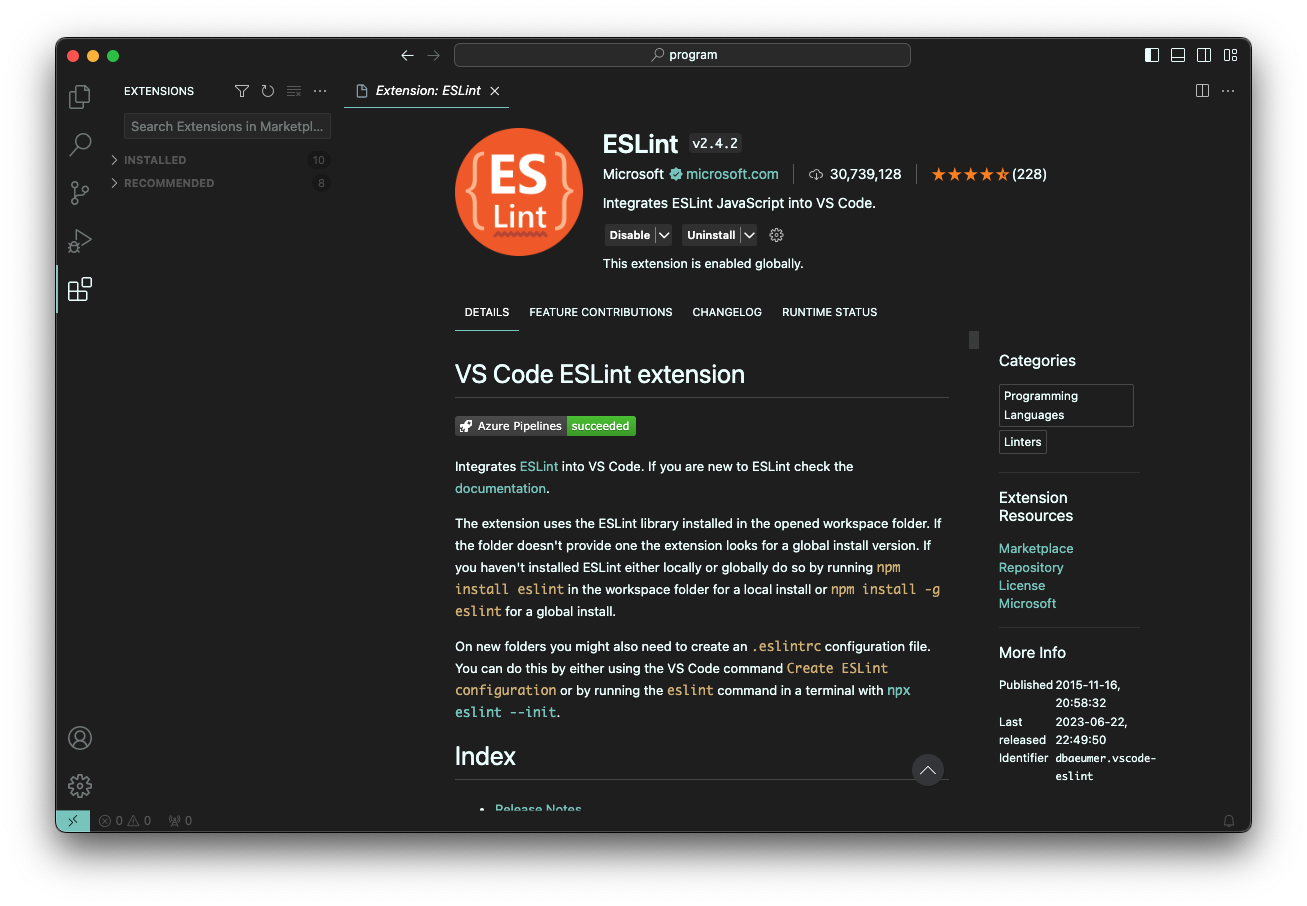 ESLint는 코드를 작성할 때 실수를 하면 에러 혹은 경고 메시지를 VS Code 에디터에서 바로 확인할 수 있게 해준다.