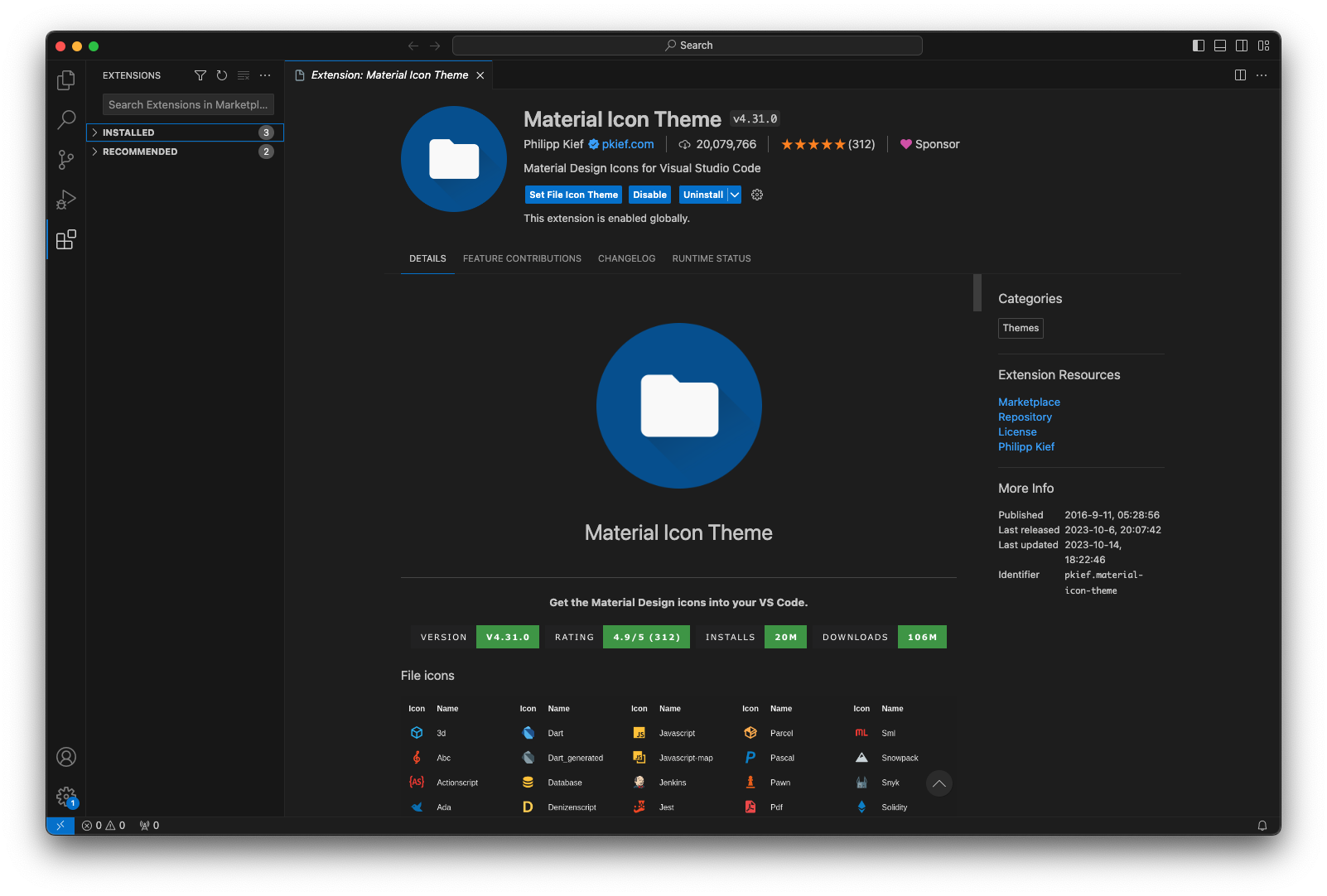 Material Icon Theme 익스텐션은 프로그래밍 언어에 맞게 아이콘을 바꿔준다
