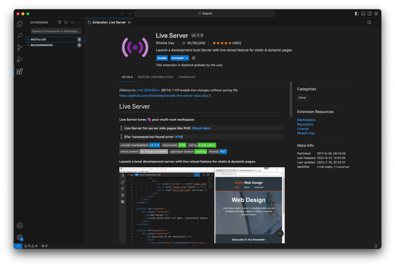 Live Server를 사용하면 소스코드를 수정할 때마다 수정 사항을 자동으로 반영 해주기 때문에