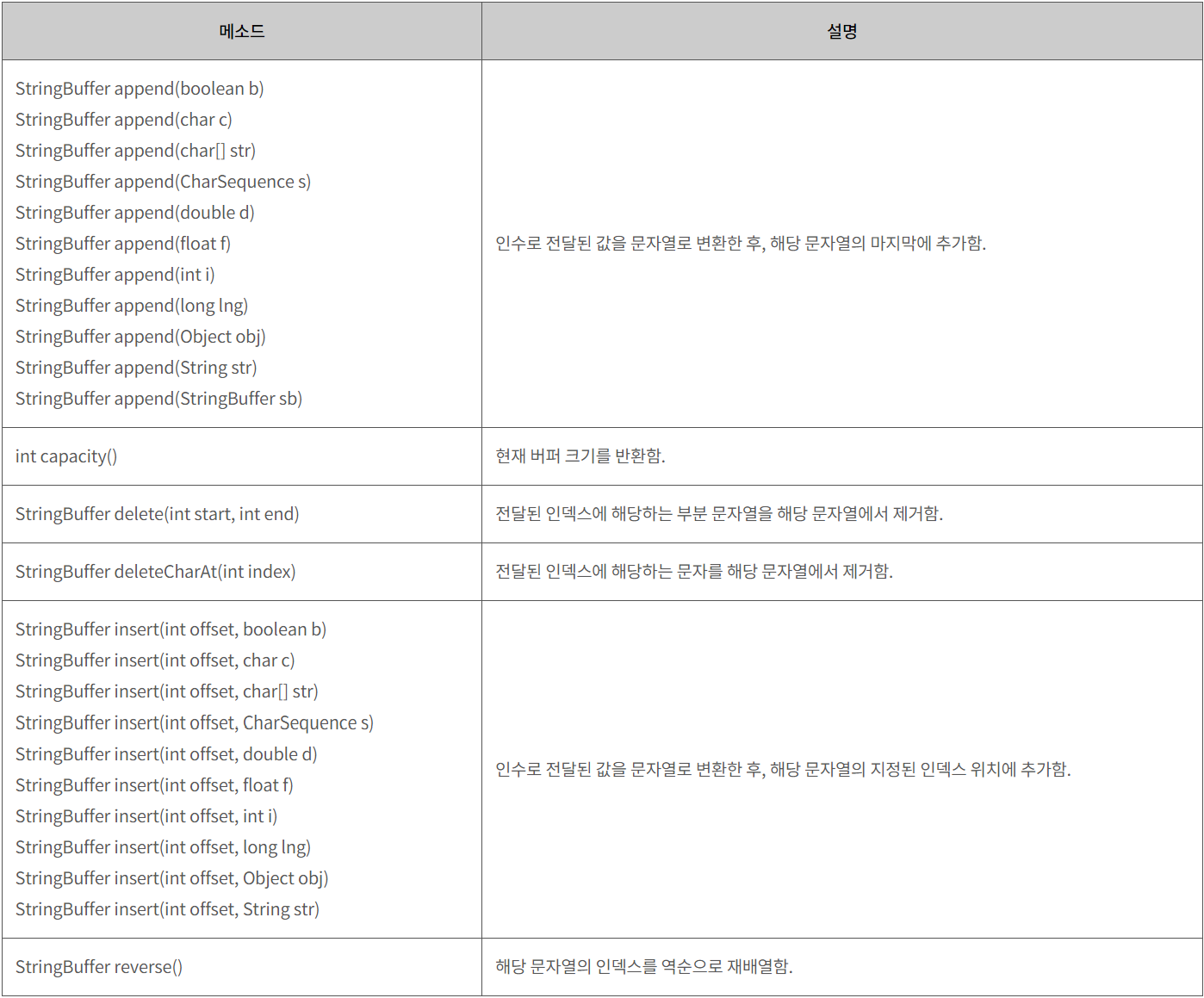 java.lang 패키지 java.lang 패키지는 자바에서 가장 기본적인 동작을 수행하는 클래스들의 집합이다. 따라서 자바에서는 java.lang 패키지의 클래스들은 import 문을 사용하지 않아도 클래스 이름만으로 바로 사용할 수 있다. java.lang.StringBuffer 클래스 String 클래스의 인스턴스는 한 번 생성되면 그 값을 읽기만 할 수 있고 변경할 수는 없다. 하지만 StringBuffer 클래스의 인스턴스는 그 값을 변경할 수도 있고 추가할 수도 있다. 이를 위해 StringBuffer 클래스는 내부적으로 버퍼(buffer)라고 하는 독립적인 공간을 가진다. 버퍼 크기의 기본값은 16개의 문자를 저장할 수 있는 크기이며 생성자를 통해 그 크기를 별도로 설정할 수도 있다. 하지만..